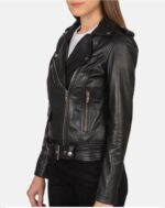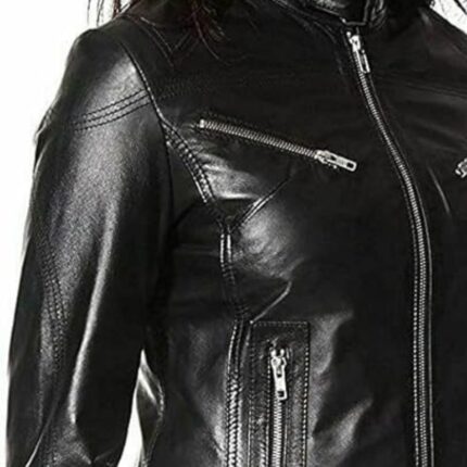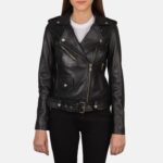 This women’s black leather biker jacket is crafted from high-quality genuine leather, designed for both style and durability. Featuring an asymmetrical front zip, multiple functional pockets, shoulder epaulets, and a waist belt, this jacket offers a classic moto look. Ideal for everyday wear, winter layering, or motorcycle riding. Perfect for fashion brands, wholesalers, and retailers looking to add a premium leather outerwear piece to their collection.